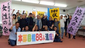 9月10月の2ヵ月間に「秋の仲間ふやし月間」として奮闘を続けてきた行動に、のべ5251人の仲間が参加しました。この期間に京建労に加入した仲間598人を迎え、目標626人に対して95・5%の到達となりました。「入ってよかった」を広げる対話活動で、府内全域の各支部所属の皆さんのお宅や事業所への、協力要請の訪問はのべ5727件となり、多くの仲間の総力をあげた活動へのご協力に感謝いたします。