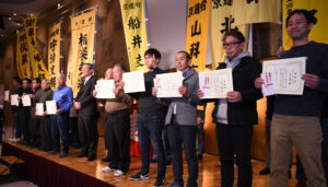会場を移して新春旗びらきも同日に行われ、春の仲間ふやし月間成功へ、各支部が決意を語りました。