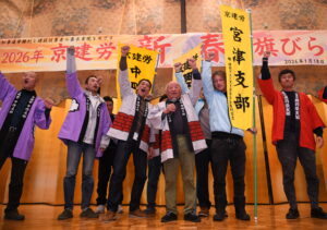 1月18日、東山区のウェスティン都ホテル京都で春の大運動活動者会議と2026年新春旗びらきが行われ、全ての支部から277人の組合活動家が集まり、春の大運動成功へ、学びを深めました。