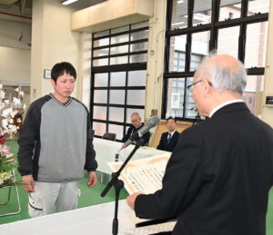 修了生には修了証書と技能照査合格証書が授与されました。なお能開協会長賞は加藤さんに、校長賞は谷口さんに贈られました。