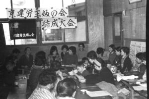 主婦の会は、1965年11月10日に結成準備会が開かれ、1966年1月20日(1965年度)に結成大会を開き、結成大会で「建設労働者の生活と権利を守るため、組合員及び家族相互の親睦を深め、家族ぐるみで組合の運動を発展させることを目的とします」としてスタート。結成60周年を迎えました。結成以来、京建労の“家族ぐるみ”の運動を象徴するなくてはならない存在です。