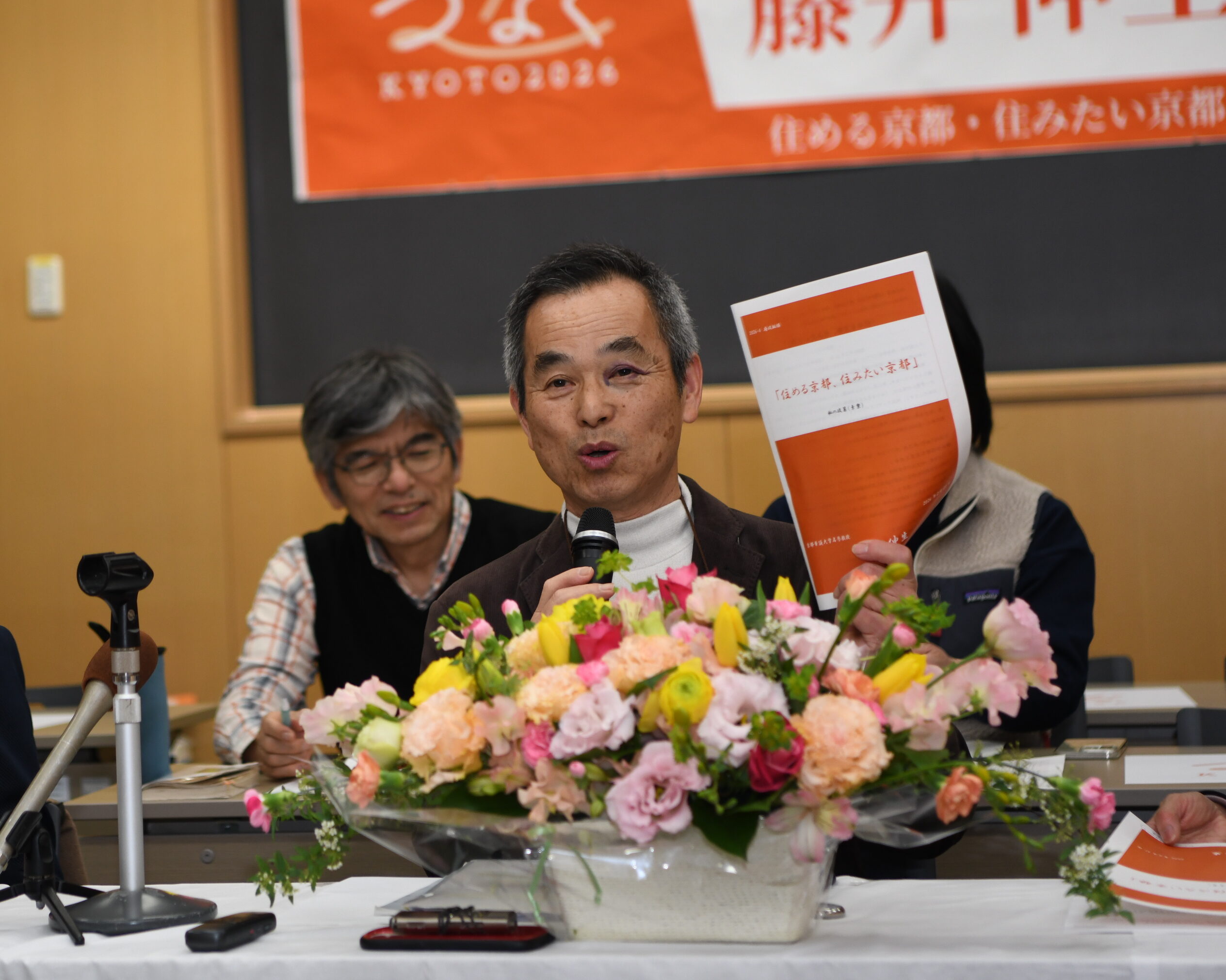 2月21日、下京区のキャンパスプラザ京都で、4月5日投開票で行われる京都府知事選挙に立候補表明をしている、藤井伸生さんの政策発表記者会見が行われました。あわせて藤井さんを支える確認団体「つなぐ京都2026」の発足も発表されました。 会見冒頭、民主府政の会共同……